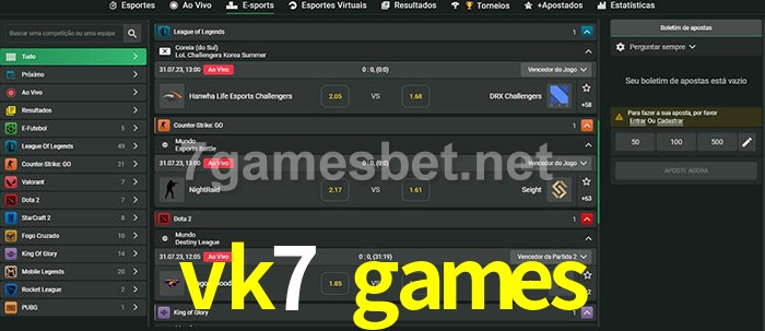 A aposta vk7 games oferece aos jogadores a experiência mais conveniente de apostas em eSports!